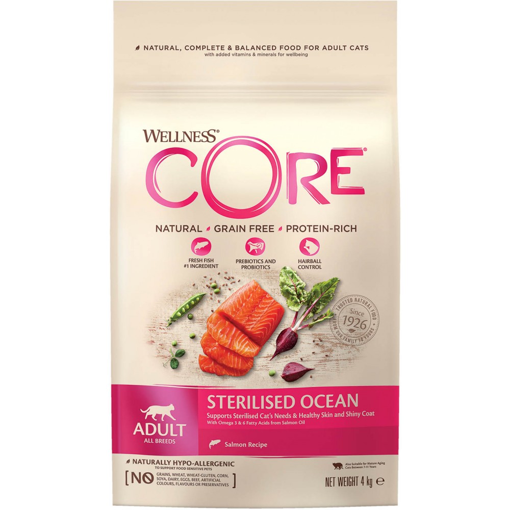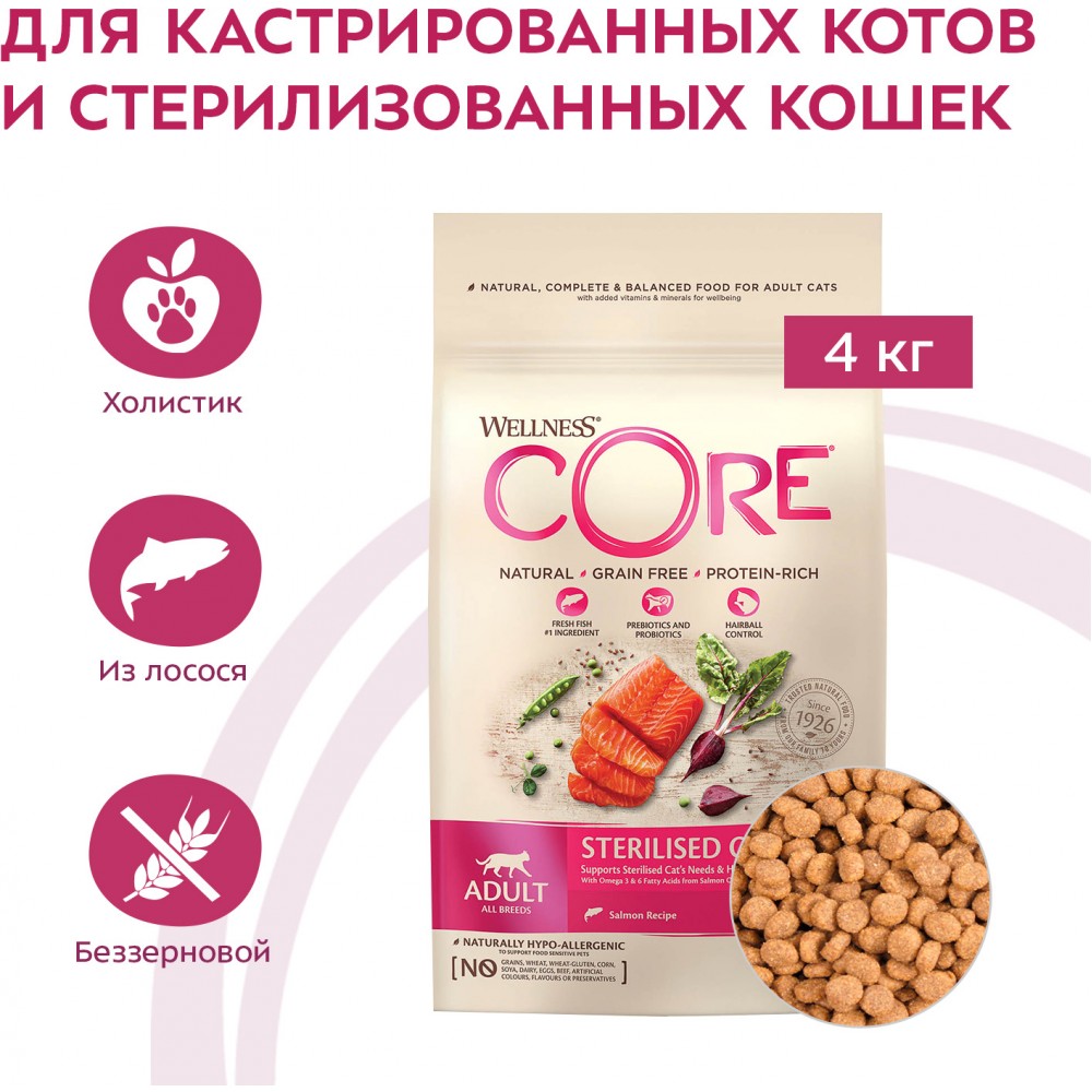 Wellness CORE —полнорационный беззерновой корм класса холистик для стерилизованных кошек и кастрированных котов, из лосося 4 кг.