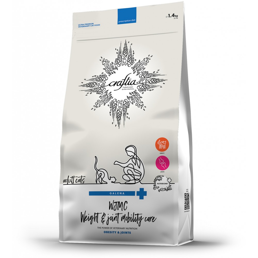 Craftia Galena Weight&Joint mobility Сare - полнорационный диетический корм для кошек, разработан для снижения веса и поддержания здоровья суставов при остеоартрите.
