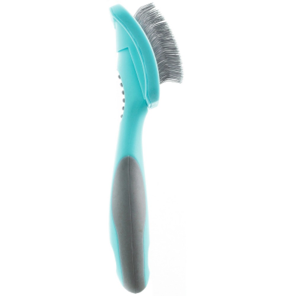 Пуходерка имеет частую метал. щетину с каплями, удаляет старую шерсть из шерсти и подшерстка, стимулирует волосяные луковицы, придает шерсти здоровый, пушистый вид. Избавляет от колтунов и спутывания. Мягкий корд. Эргономичная ручка с упором под большой палец. Длина ручки 95 мм.