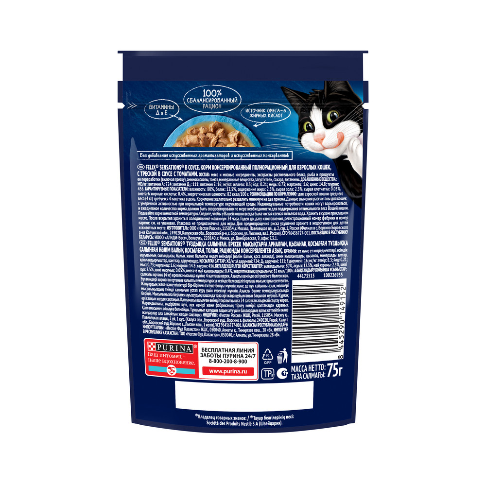 Чтобы Ваш питомец получил богатейшую палитру ощущений вкуса и аромата, эксперты Purina создали влажный корм для взрослых кошек Felix «Sensations».