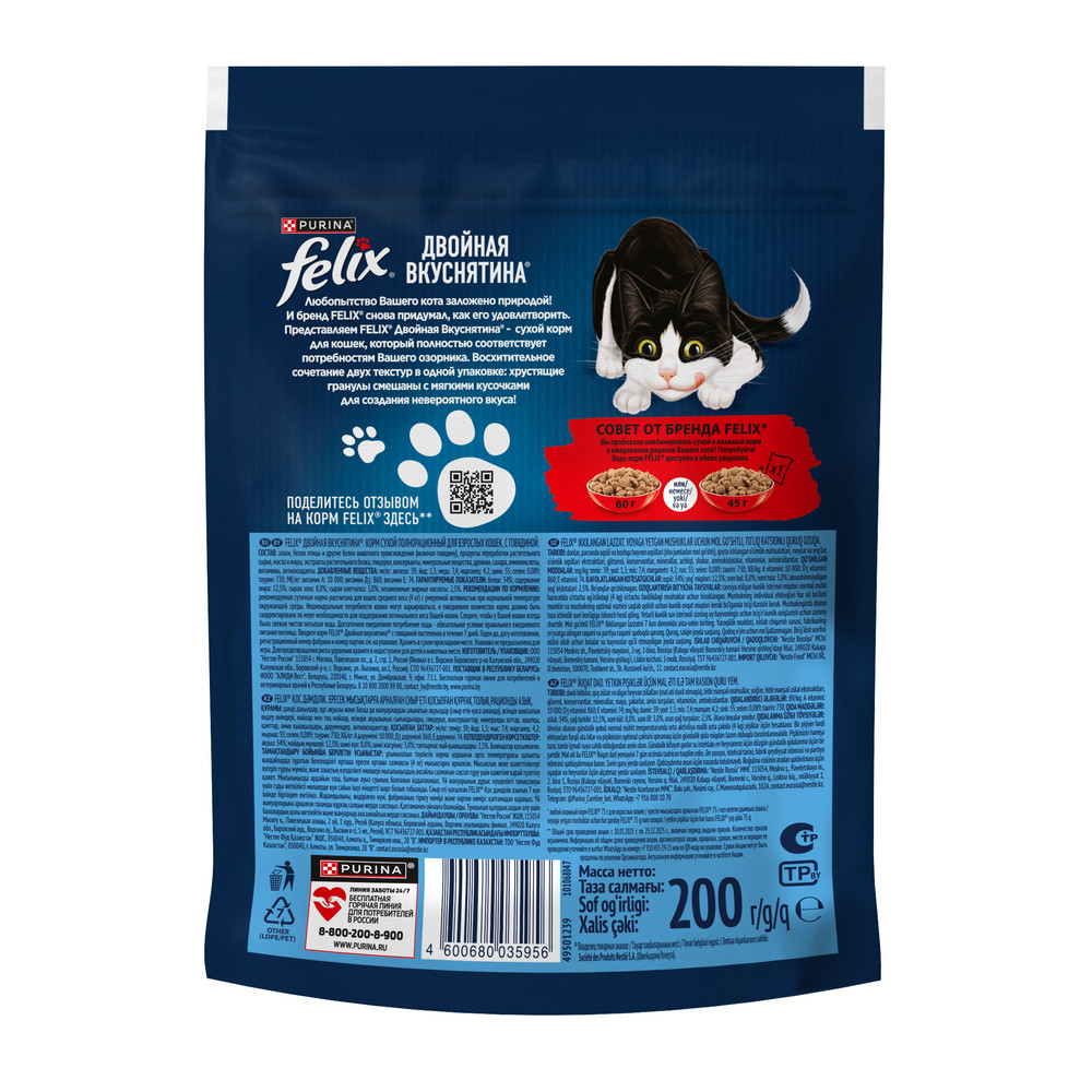 •Содержит витамины А, Д, Е и таурин Совет от Felix®: Вы пробовали комбинировать сухой и влажный корм в ежедневном рационе Вашего кота?