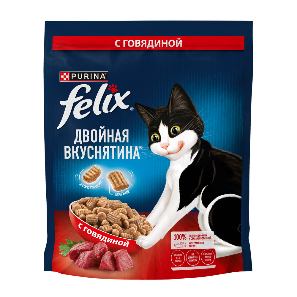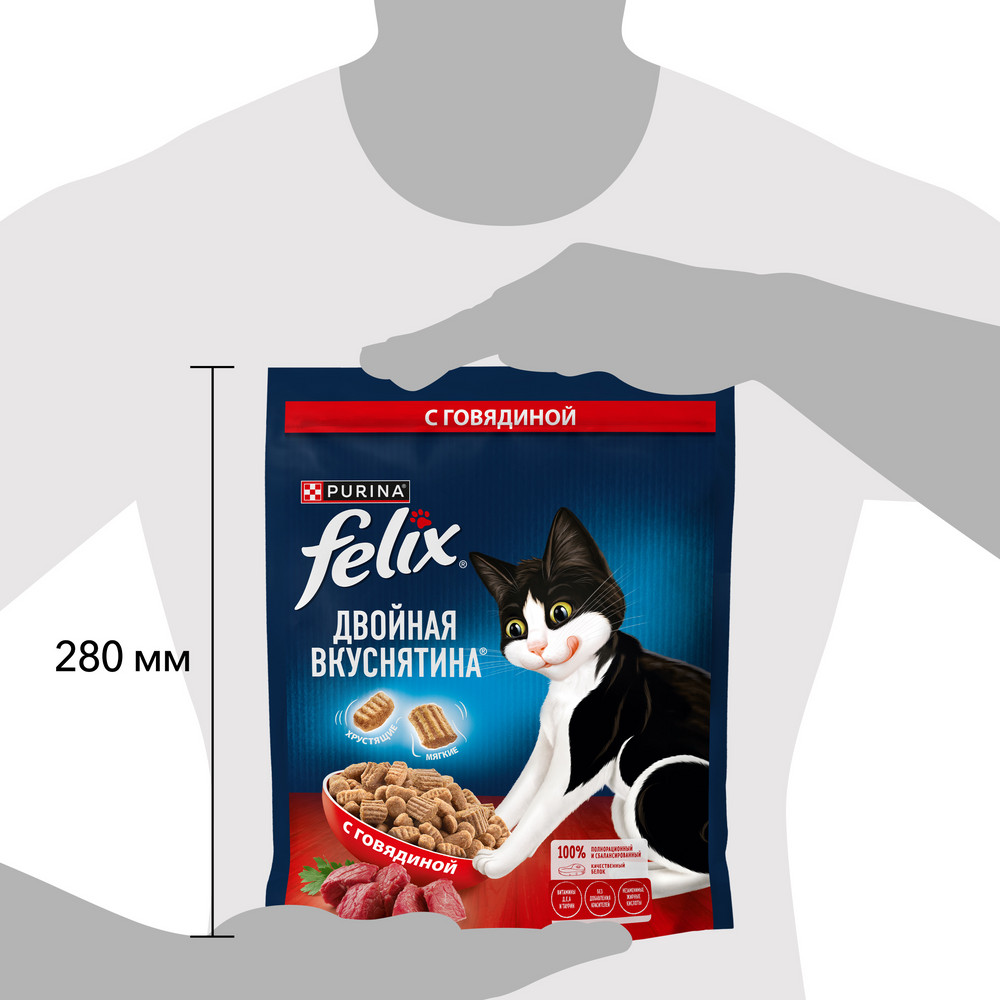 FELIX® Двойная Вкуснятина® - первый сухой корм, созданный под брендом FELIX® для находчивого кота, который знает толк во вкусной еде.