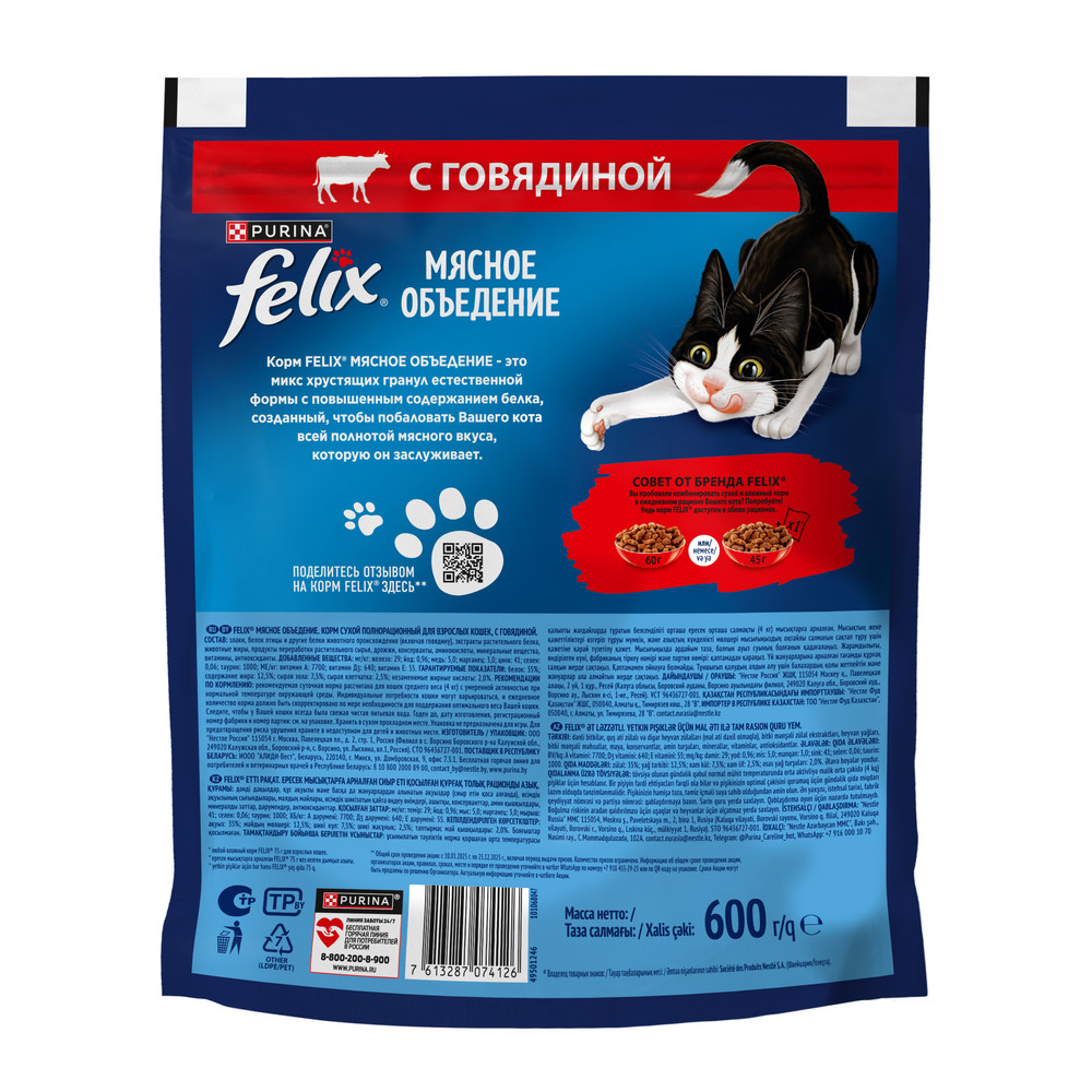 • Сухой корм для кошек FELIX® содержит повышенное содержание белка