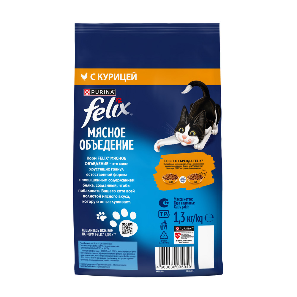 И это еще не все! Корм FELIX® “МЯСНОЕ ОБЪЕДЕНИЕ” содержит оптимальное сочетание сбалансированных минеральных веществ и витаминов.