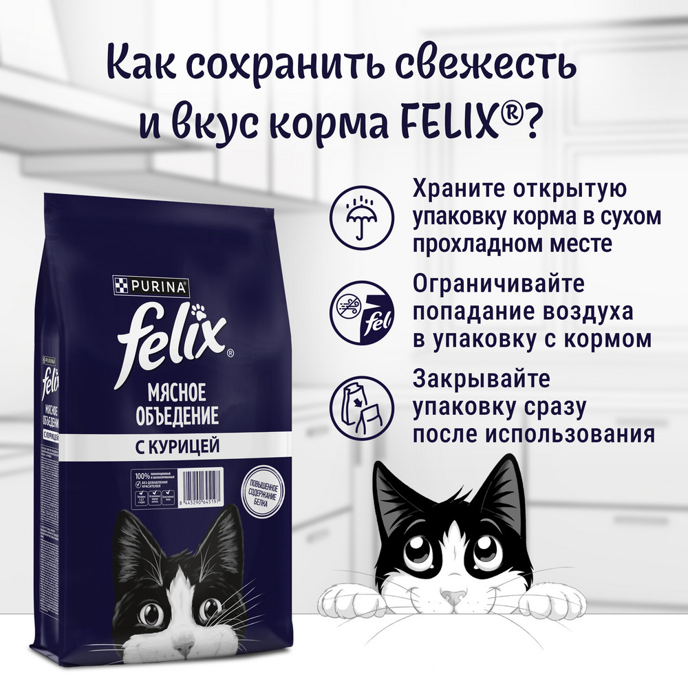 • Сухой корм для кошек FELIX® содержит повышенное содержание белка