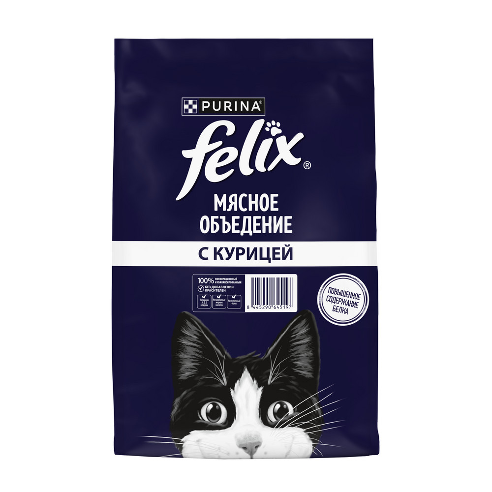 Сухой корм для кошек FELIX® Мясное объедение — это микс аппетитных хрустящих гранул с повышенным содержанием белка с насыщенным мясным вкусом.