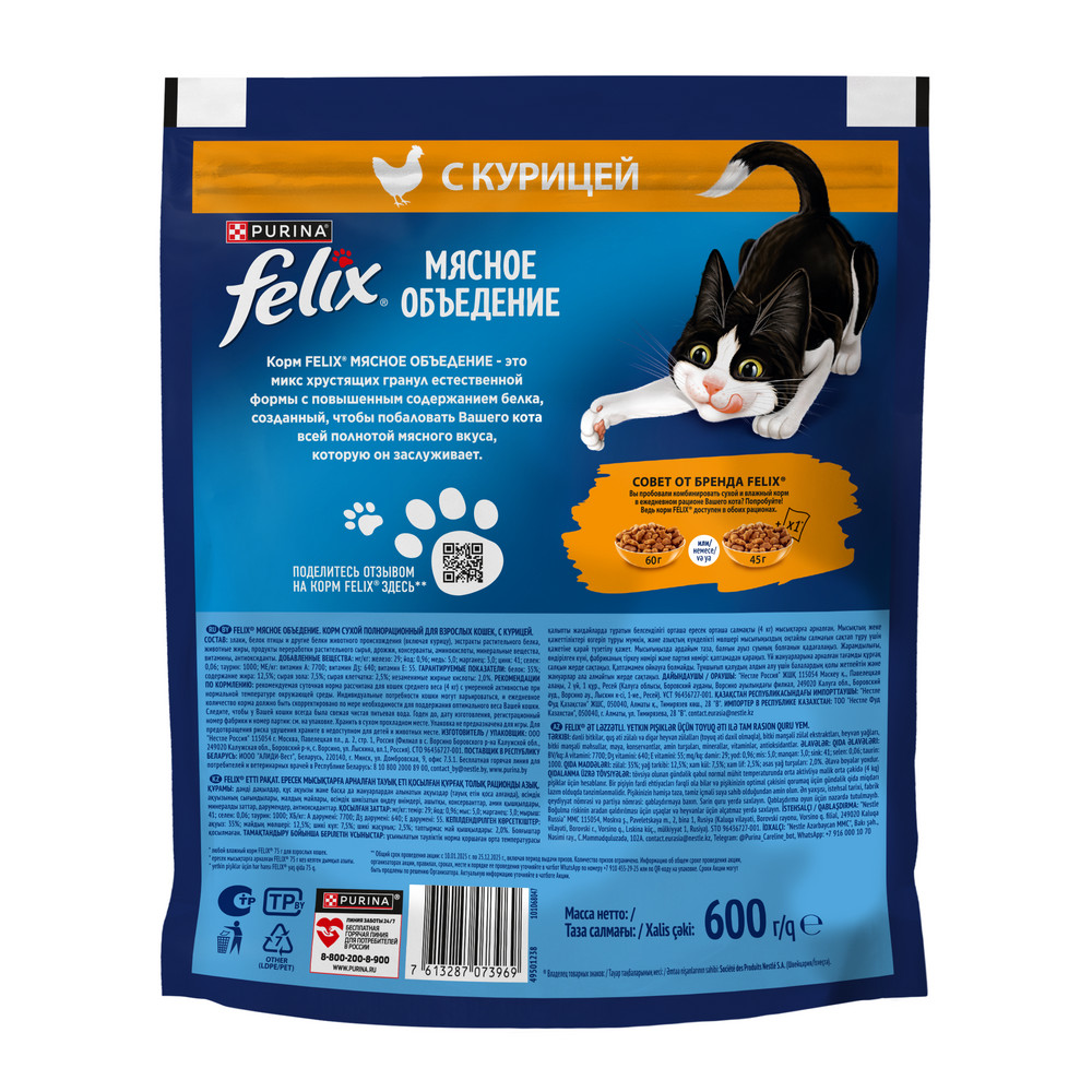 • Сухой корм для кошек FELIX® содержит повышенное содержание белка