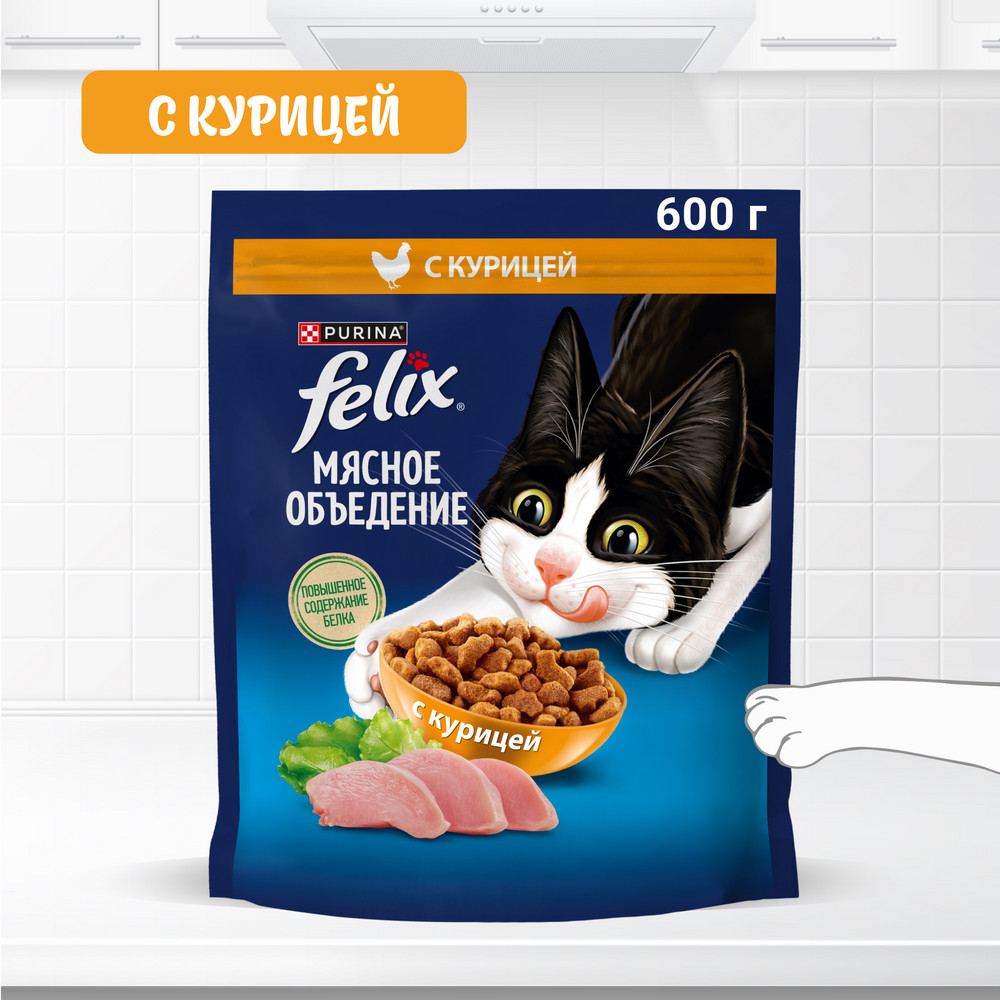 Сухой корм для кошек FELIX® Мясное объедение — это микс аппетитных хрустящих гранул с повышенным содержанием белка с насыщенным мясным вкусом.