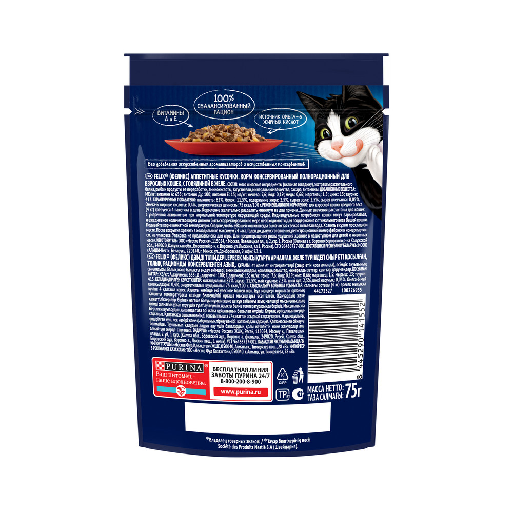 Влажный корм для кошек Felix Аппетитные кусочки — полнорационный, содержит все необходимое для здоровой активной долгой жизни.