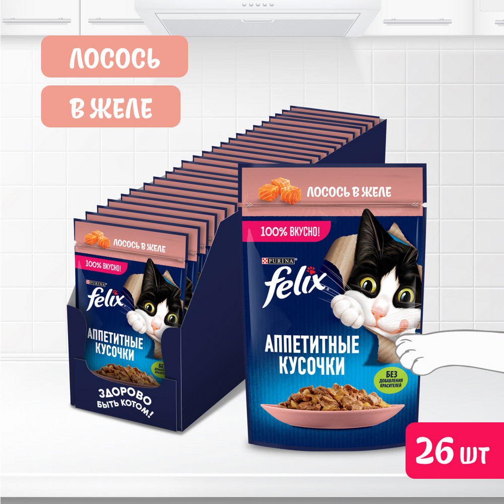 Влажный корм для кошек Felix Аппетитные кусочки — полнорационный, содержит все необходимое для здоровой активной долгой жизни.