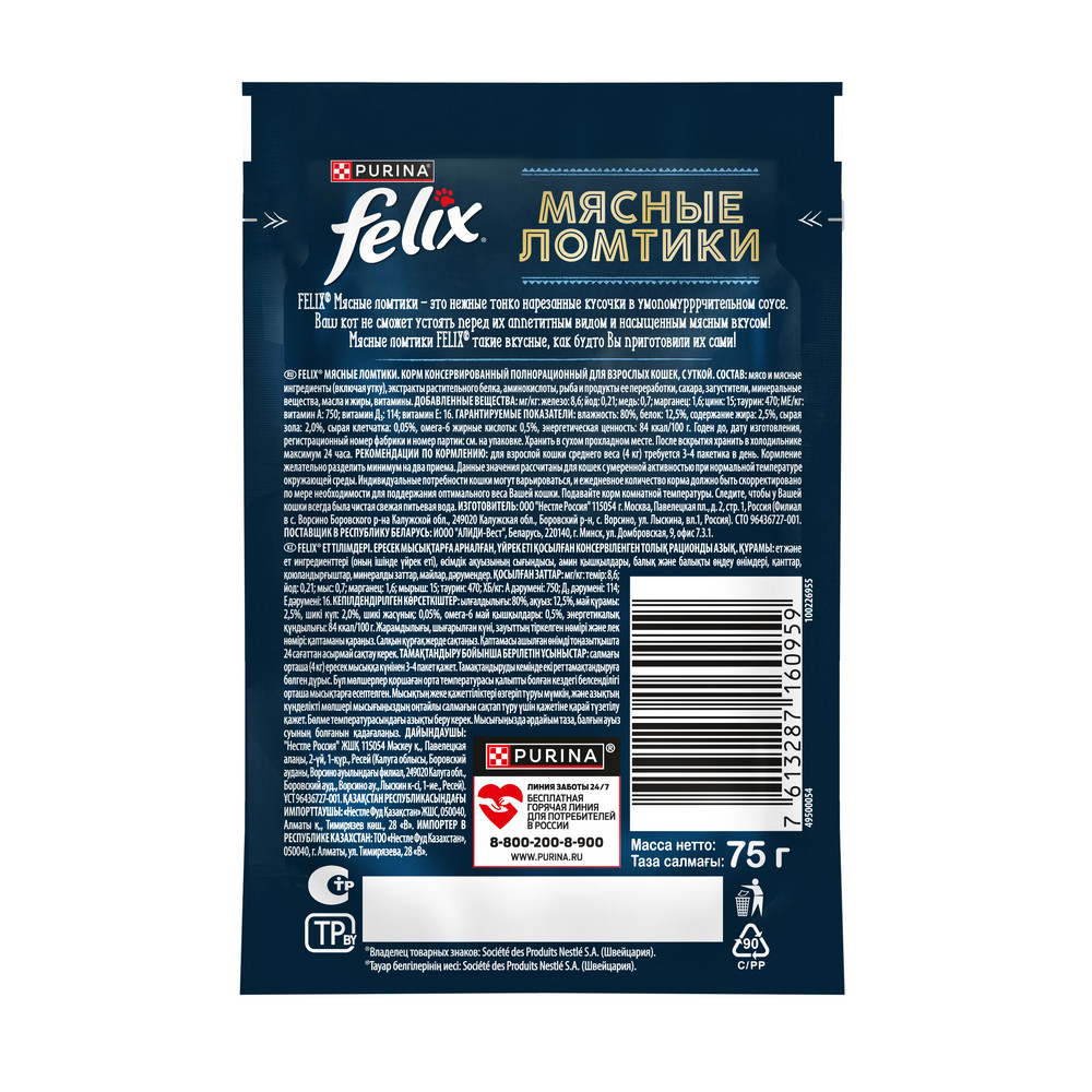 Эксперты Purina, разрабатывая влажные корма для домашних любимцев, создали корм для взрослых кошек Felix «Мясные ломтики» — специально для Вашего любителя мяса.