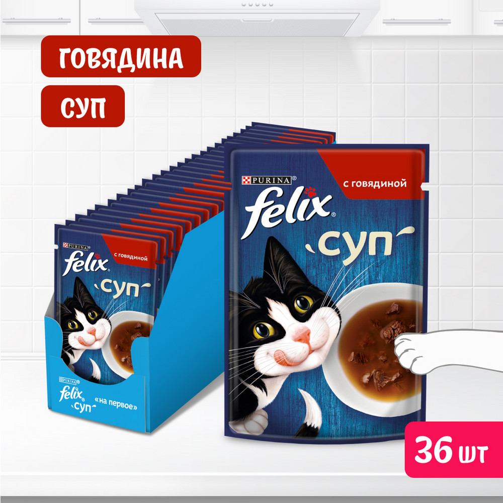 Эксперты Purina, разрабатывая влажные корма для домашних питомцев, создали не просто корм для взрослых кошек, а Felix Суп — настоящую вкуснятину «на первое» и идеальное дополнение к рациону Вашего любимца.