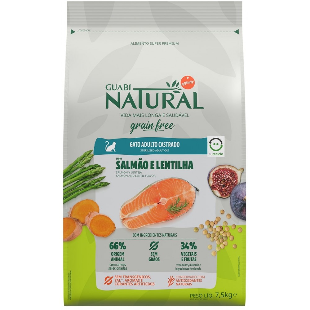 Сбалансированный беззерновой корм для взрослых кастрированных котов и стерилизованных кошек содержит лекоусвояемые компоненты, такие как отборное мясо лосося и чечевица.