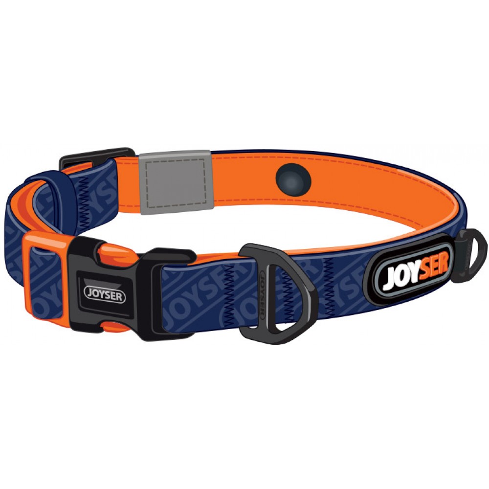 В ошейник добавлен светоотражающий элемент, который обеспечит безопасную прогулку в вечернее время, фиксаторы для фирменных шевронов на кнопках и специальное кольцо для жетона-адресника.