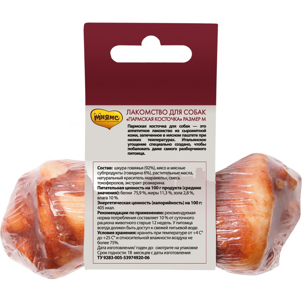 Пармская косточка для собак — это аппетитное лакомство из сыромятной кожи, запеченное в мясном паштете при низких температурах