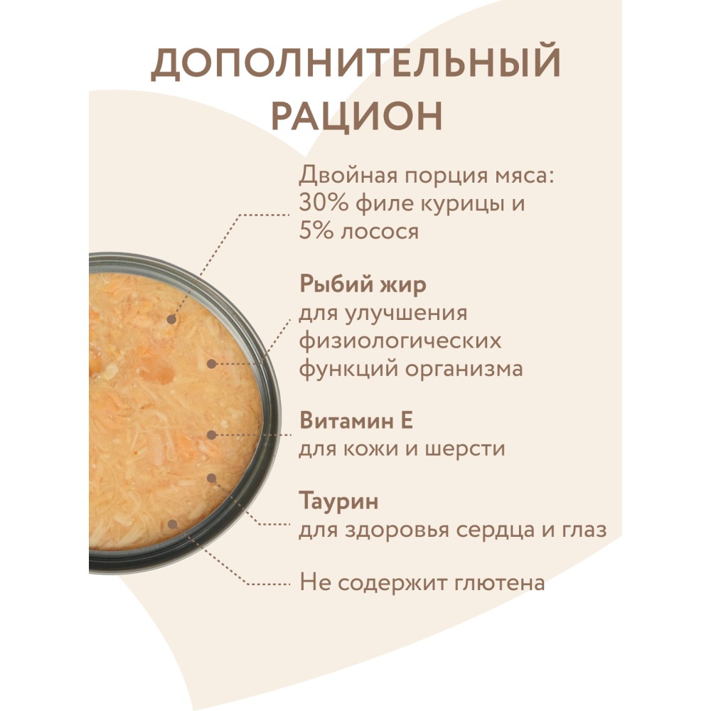 Консервированный дополнительный корм для кошек и котят старше 6 месяцев «Курица с лососем в нежном желе" 80 г.