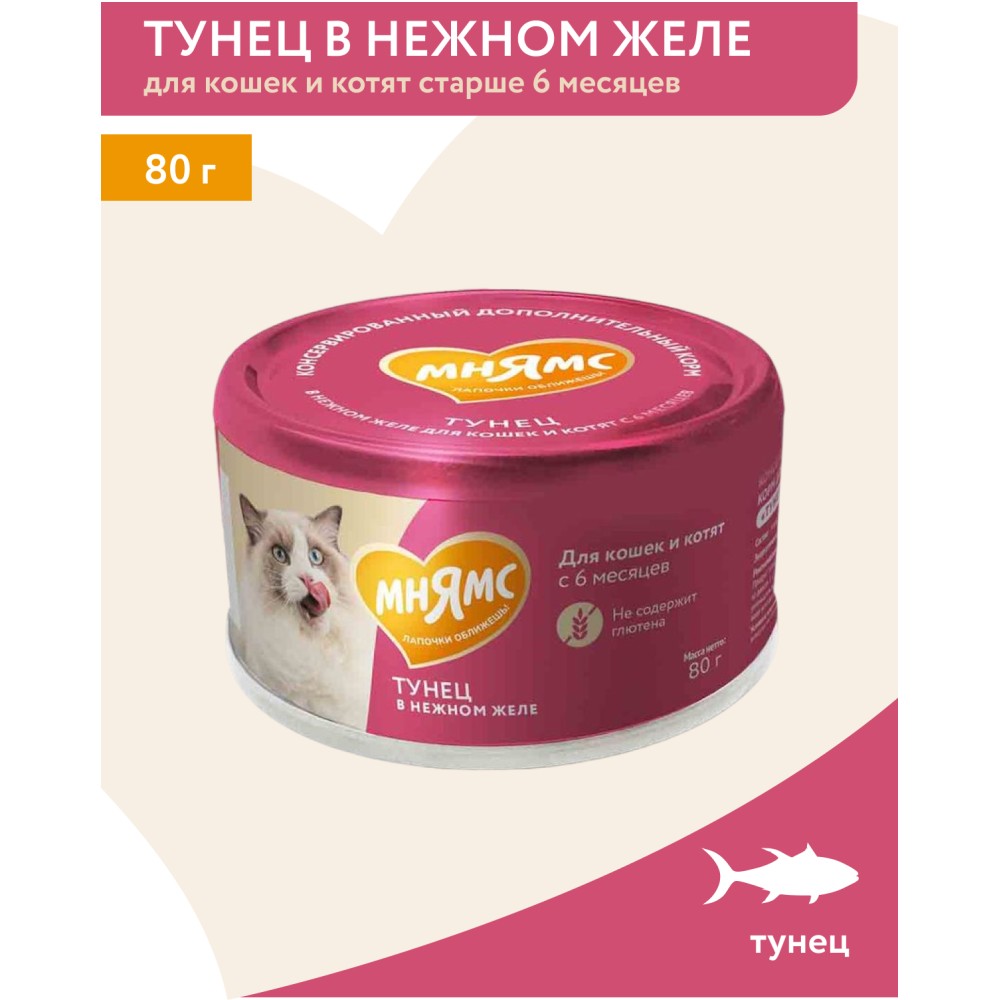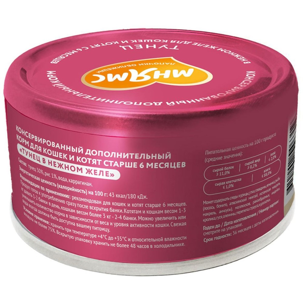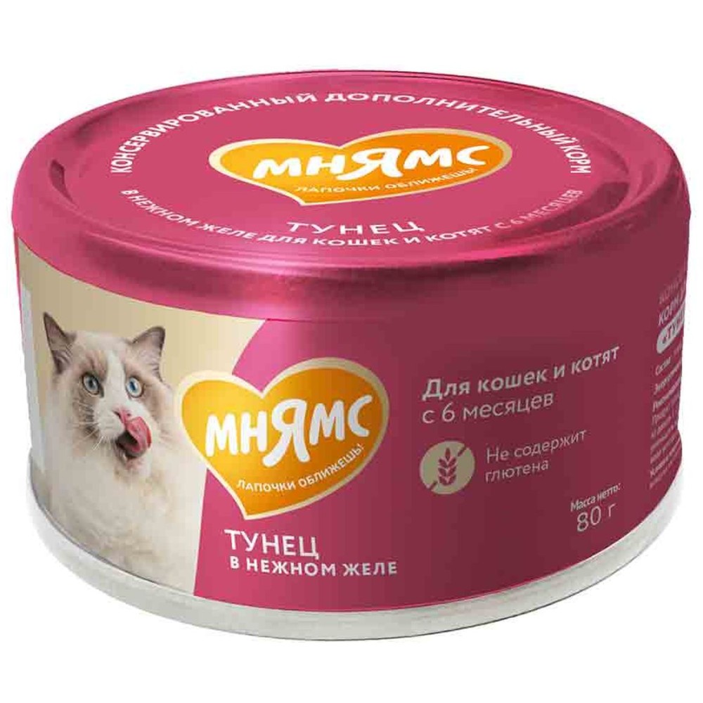«Мнямс» консервированный дополнительный корм для для кошек и котят старше 6 месяцев "Тунец в нежном желе" гарантирует, что ваш питомец получит только качественный и вкусный продукт, который прекрасно разнообразит его рацион, поддержит здоровье и обеспечит энергией.