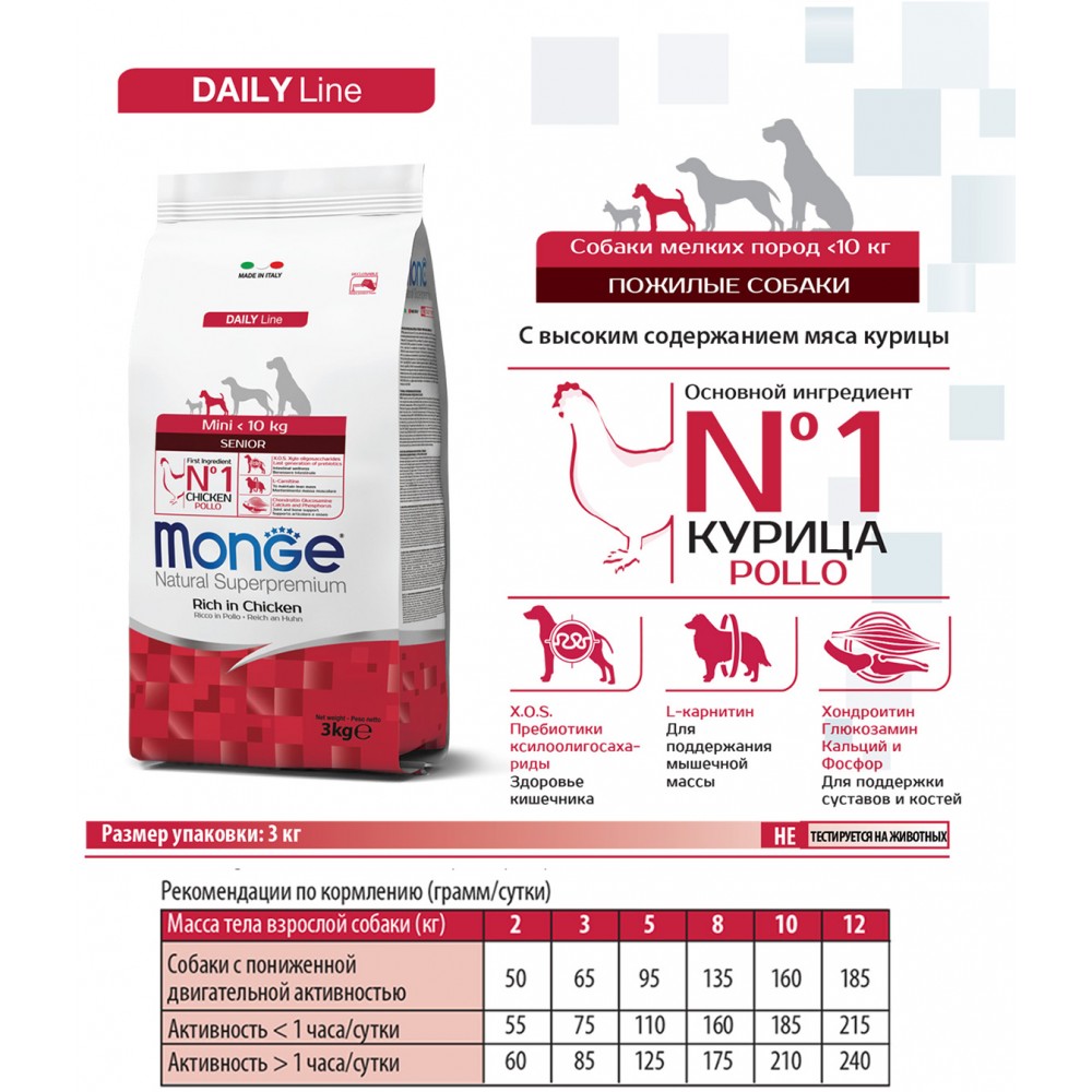 Monge (Монж/Монже) Dog Speciality MINI SENIOR Полноценный сбалансированный рацион для пожилых собак мелких пород 3 кг