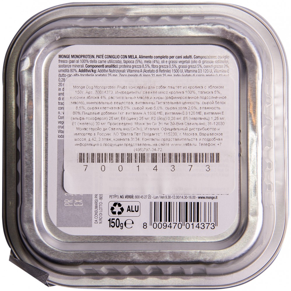 Monge (Монж/Монже) Dog Monoprotein (Монопротеин) Fruits консервы для собак паштет из кролика с яблоком.