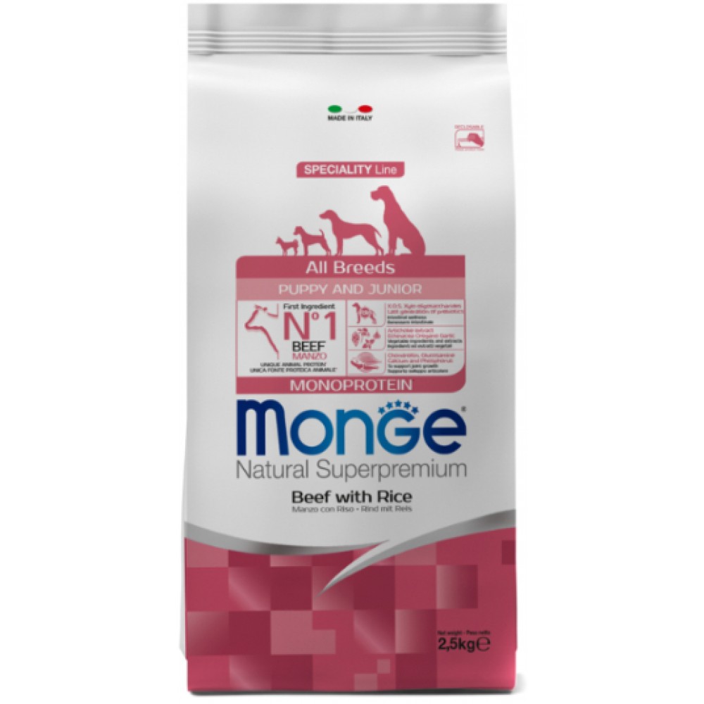 Monge (Монж/Монже) Dog Monoprotein Puppy & Junior корм для щенков всех пород говядина с рисом 2,5 кг