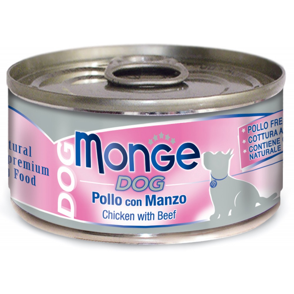 Влажный корм Monge Dog Natural для собак куриные кусочки с говядиной, консервы 95 г.