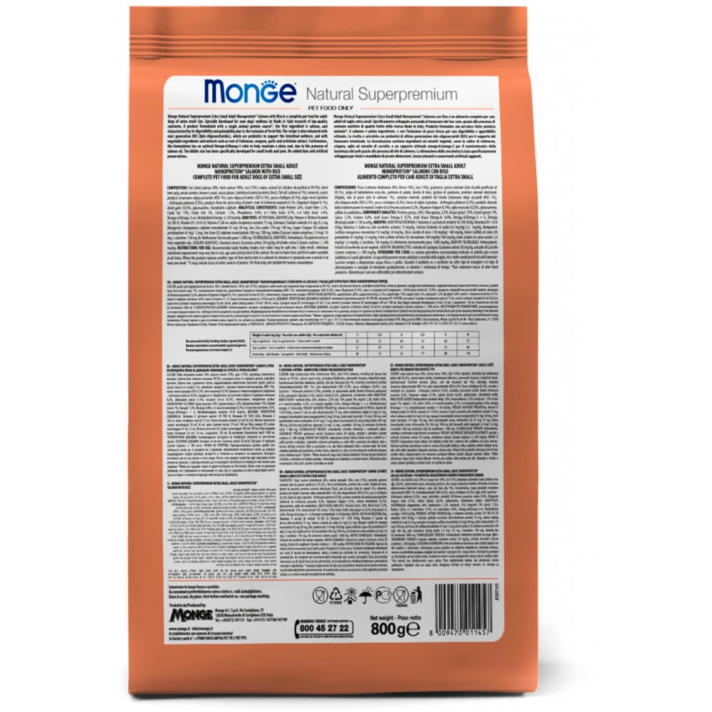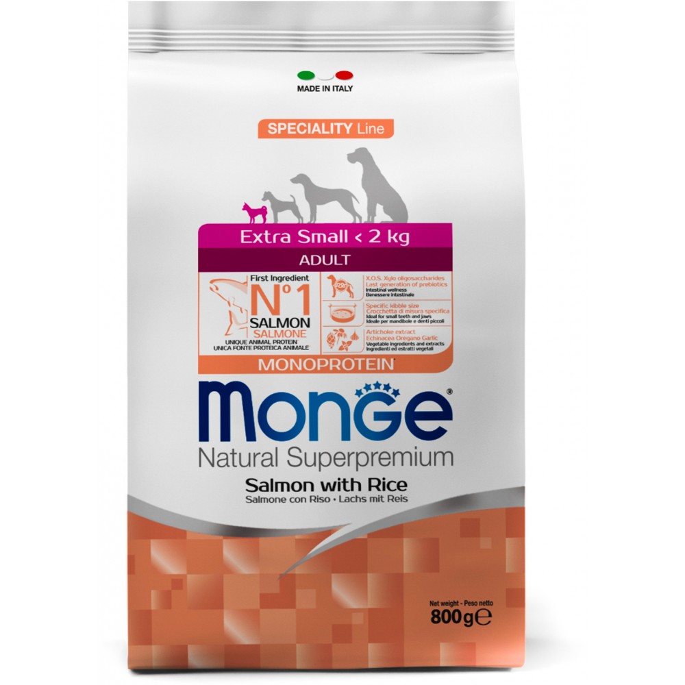 Monge (Монж/Монже) Dog Monoprotein (Монопротеин) Extra Small корм для взрослых собак миниатюрных пород лосось с рисом 800г