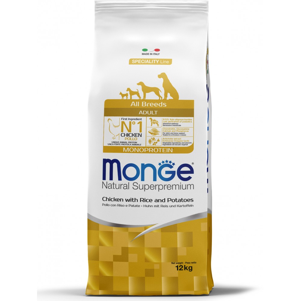 Monge (Монж/Монже) Dog Monoprotein (Монопротеин) корм для собак всех пород курица с рисом и картофелем 12 кг.
