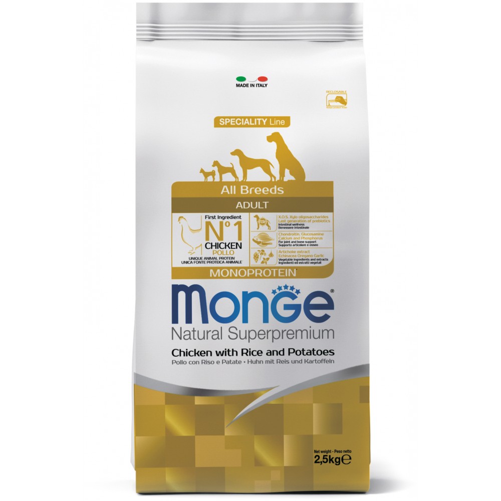 Monge (Монж/Монже) Dog Monoprotein (Монопротеин) корм для собак всех пород курица с рисом и картофелем 2,5 кг.