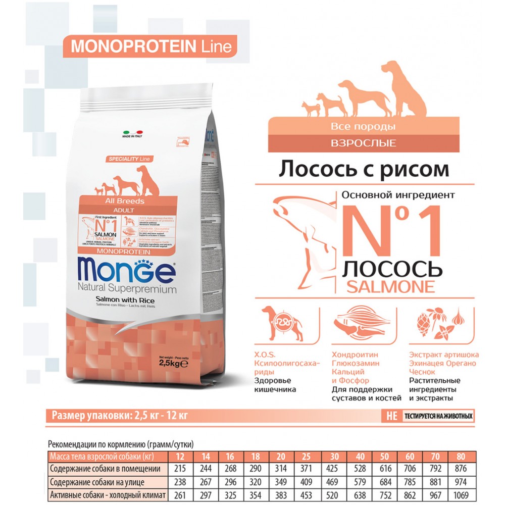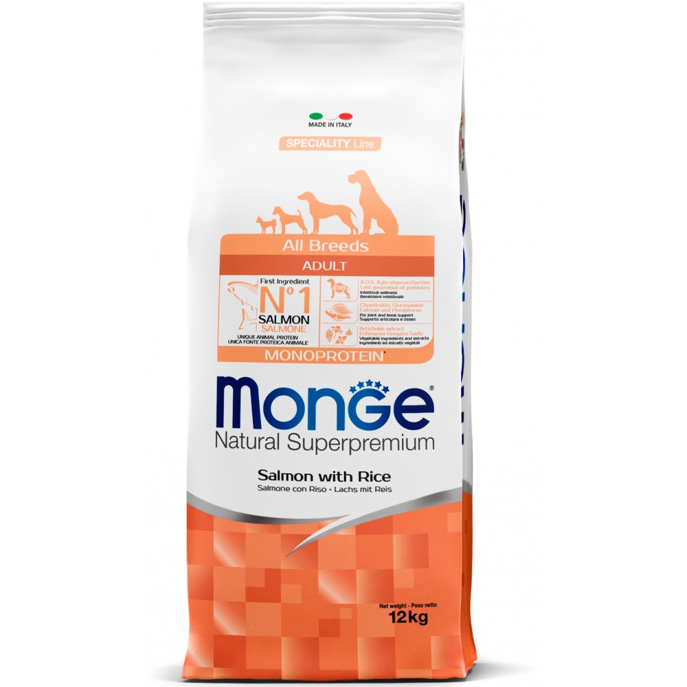 Monge (Монж/Монже) Dog Monoprotein (Монопротеин) корм для собак всех пород лосось с рисом 12 кг.