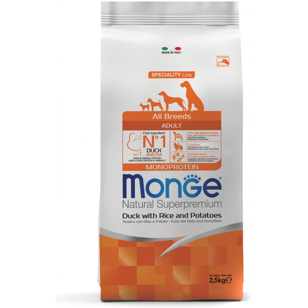 Monge (Монж/Монже) Dog Monoprotein (Монопротеин) корм для собак всех пород утка с рисом и картофелем 2,5 кг.