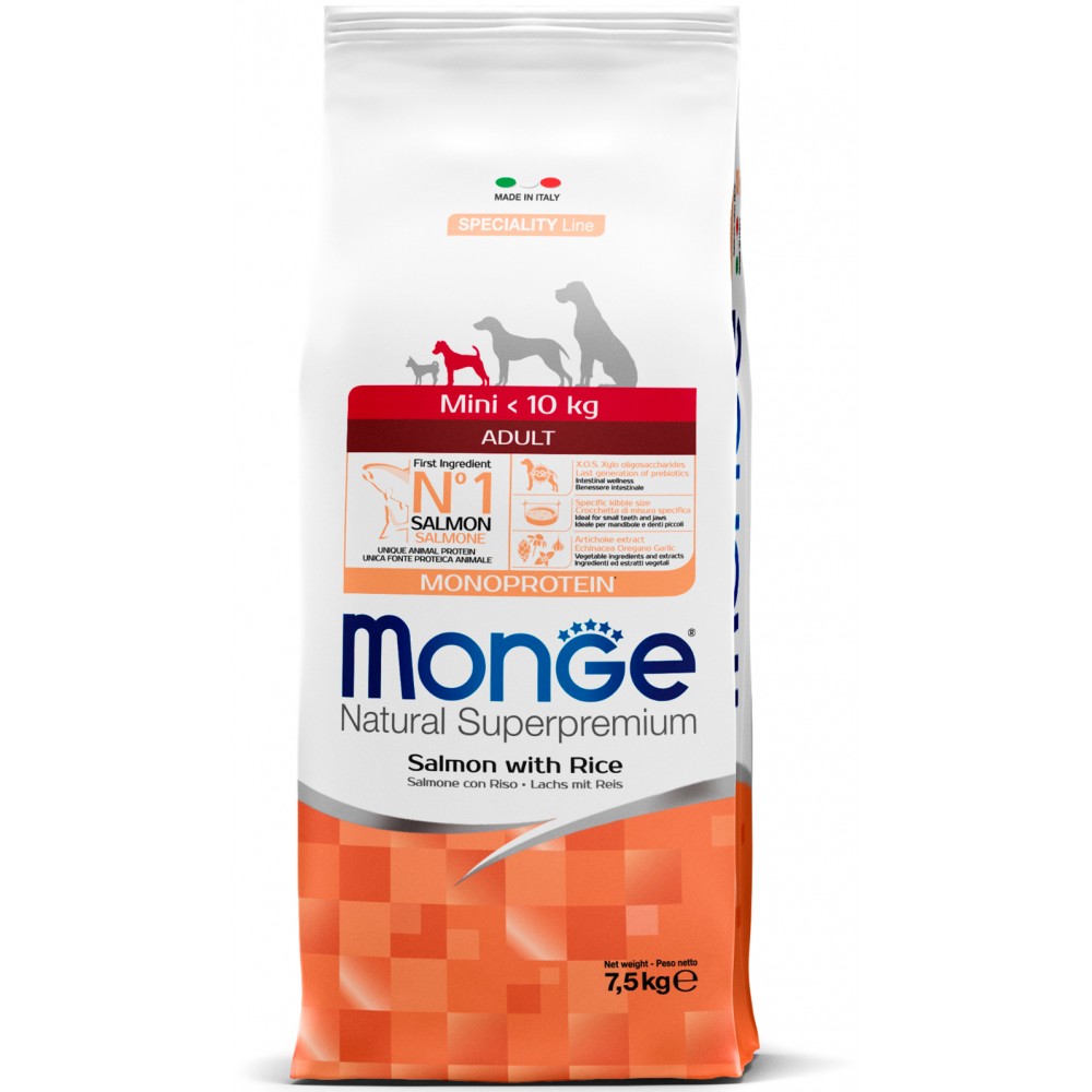 Monge (Монж/Монже) Dog Monoprotein (Монопротеин) Mini корм для взрослых собак мелких пород лосось с рисом 7,5 кг.