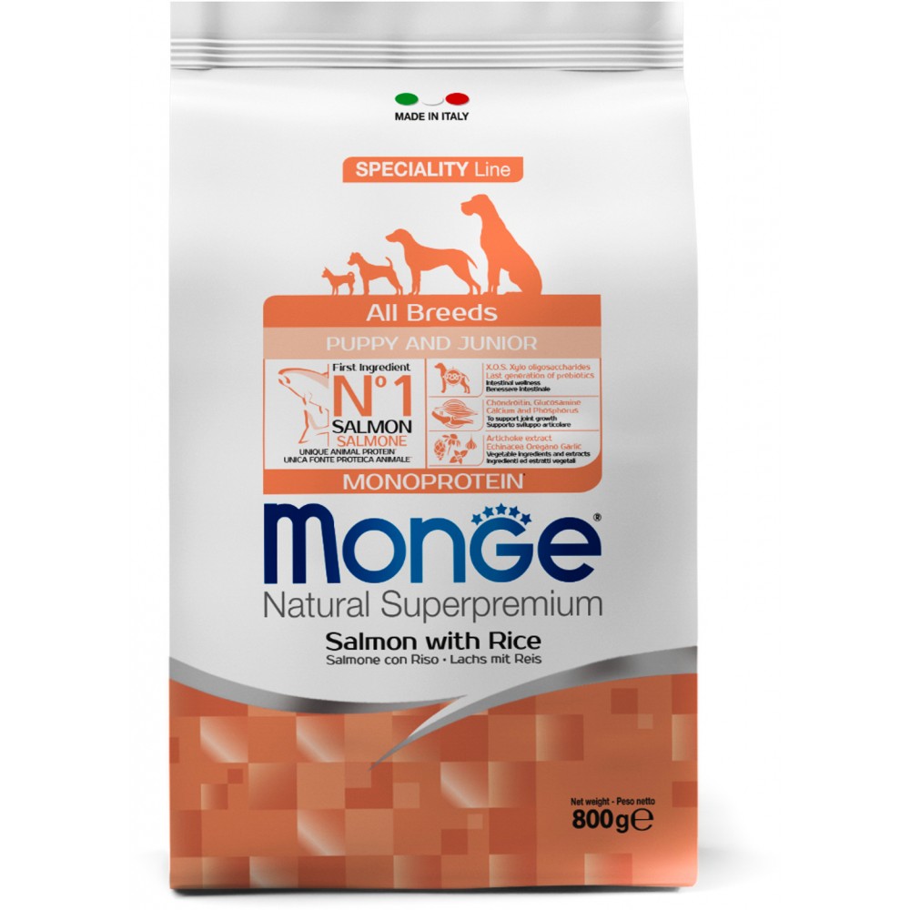 Monge (Монж/Монже) Dog Monoprotein (Монопротеин) Puppy&Junior корм для щенков всех пород лосось с рисом 800г