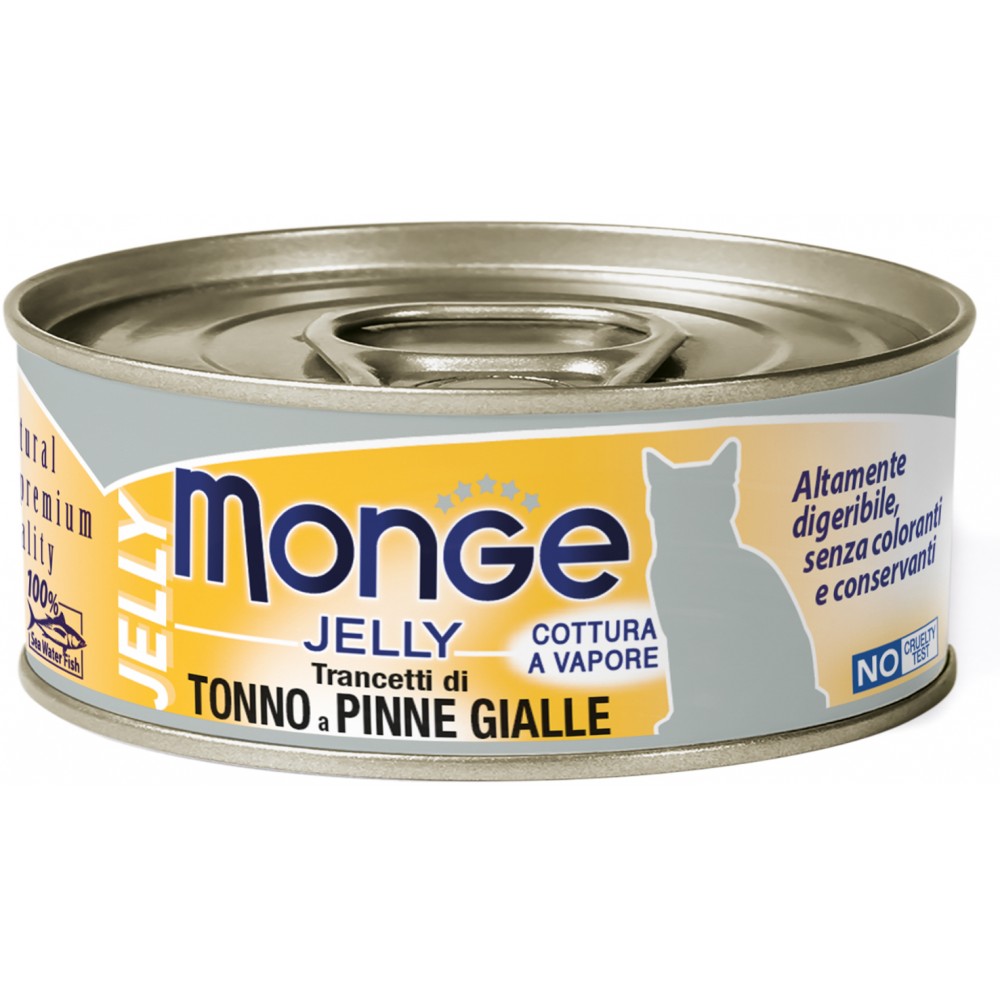 Влажный корм Monge jelly Adult cat для взрослых кошек с желтоперым тунцом, консервы 80 г.
