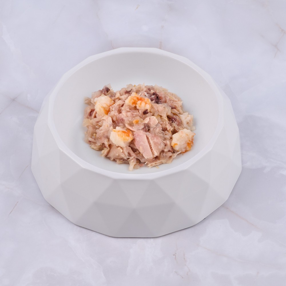 Основой рационов является тунец с добавлением различных морепродуктов и свежей рыбы, которые являются источником белка высокой пищевой ценности.