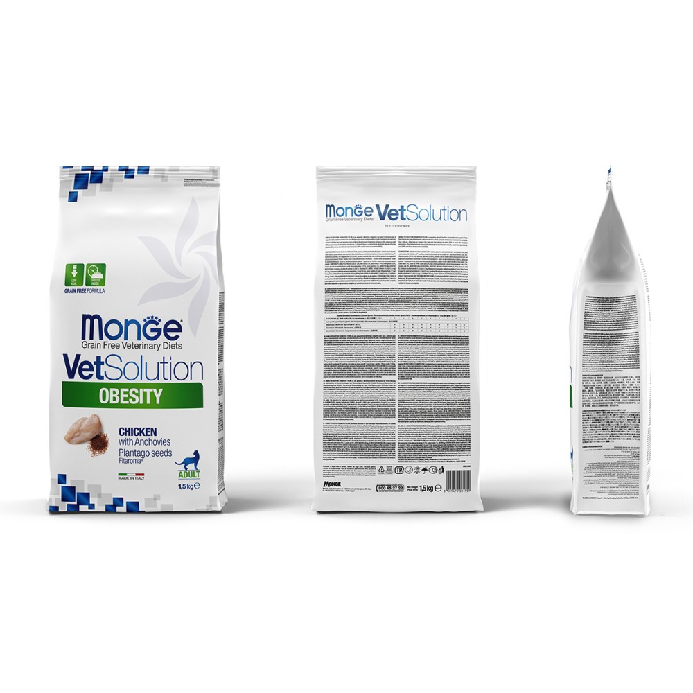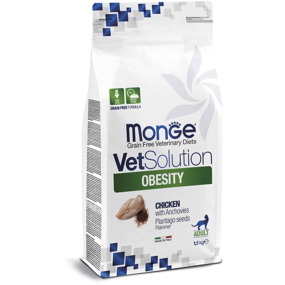 Monge (Монж/Монже) VetSolution Obesity — полнорационный сухой диетический корм из курицы для кошек «Obesity» для с целью снижения избыточной массы тела (ожирении) и поддержания оптимальной физической формы.