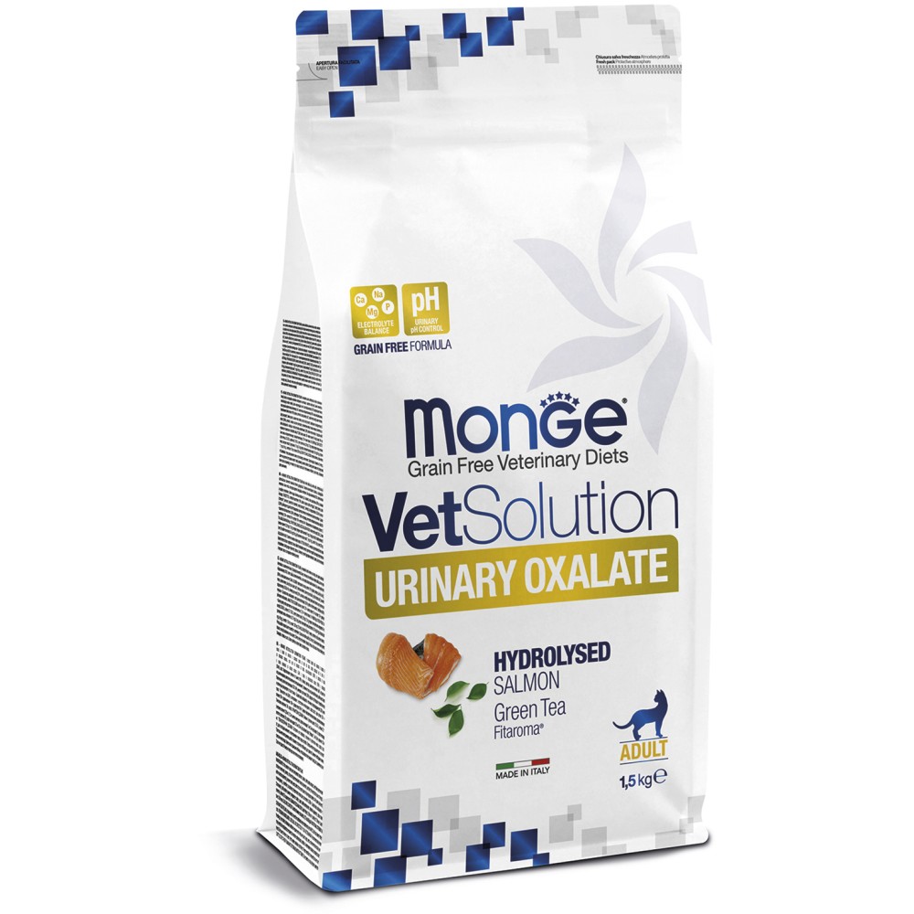 Лечебный корм Monge (Монж/Монже) VetSolution Cat Urinary Oxalate Уринари Оксалат для кошек при заболеваниях мочеполовой системы, таких как идиопатический цистит (синдром болезненного мочевого пузыря, интерстициальный цистит) и оксалатное течение мочекаменной болезни (оксалатная кристаллурия и уролитиаз) 1,5 кг