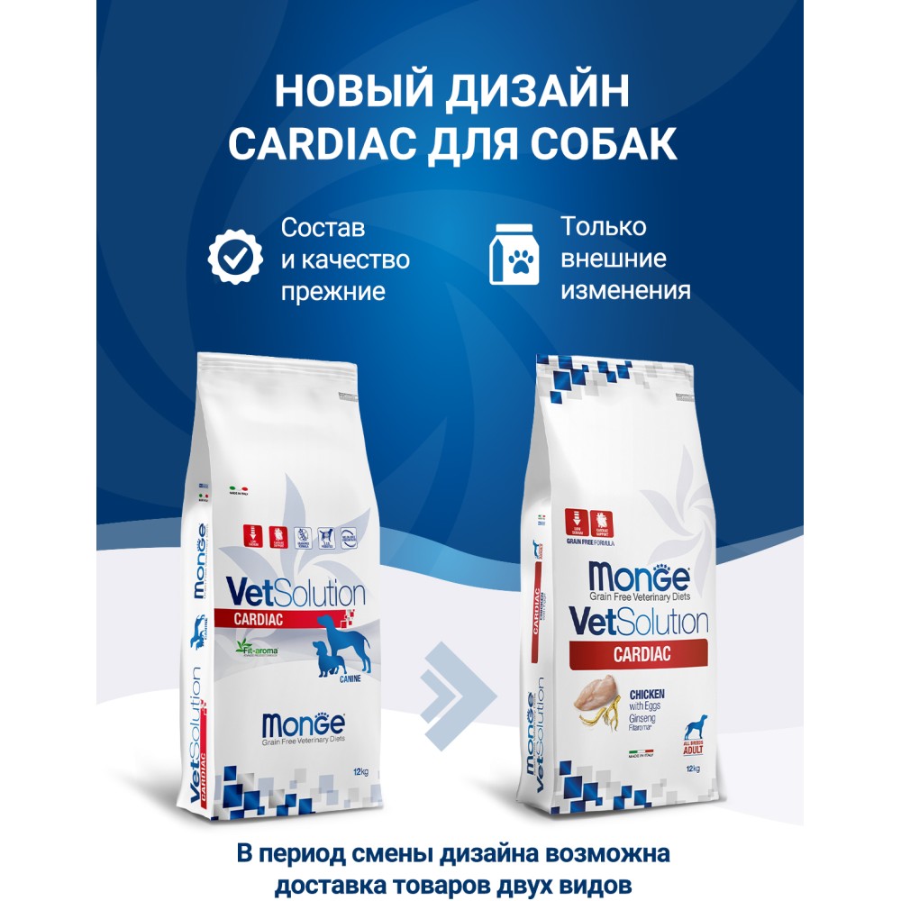 Ветеринарная диета Monge (Монж/Монже) VetSolution Cardiac разработана для собак с целью поддержки функций сердца через питание.
