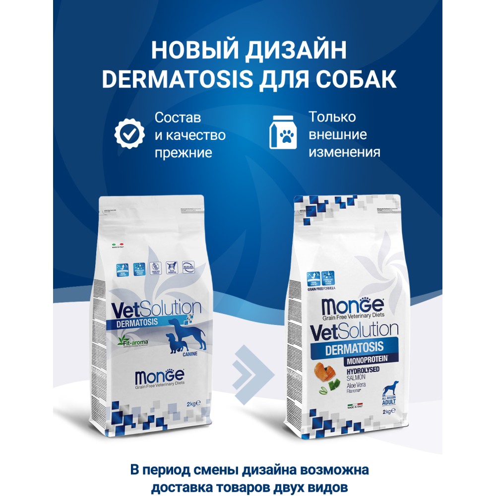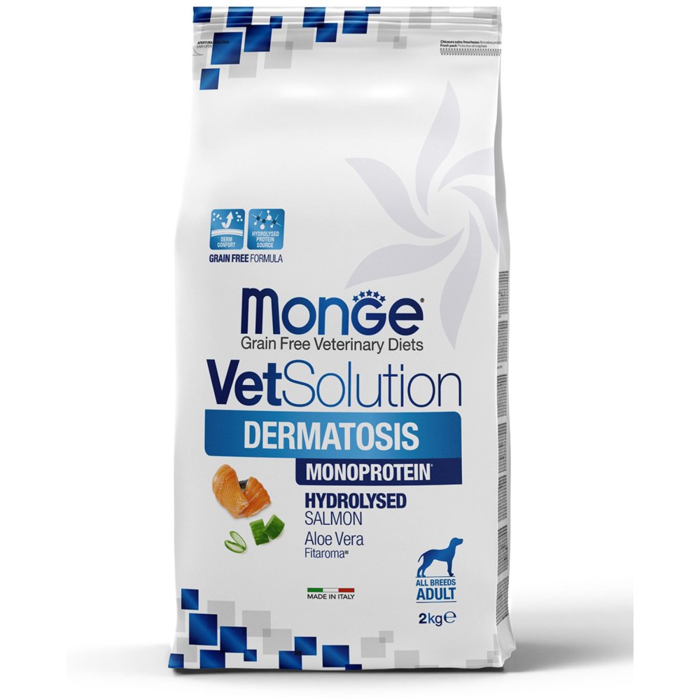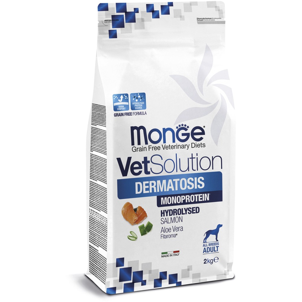 Лечебный корм Monge VetSolution Dog Dermatosis Дерматозис для собак при заболеваниях кожи, таких как дерматит, хронический зуд, заболеваниях кожи, сопровождающиеся воспалением, пищевая аллергия и пищевая непереносимость 2 кг