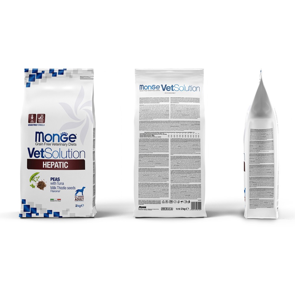 Monge (Монж/Монже) VetSolution Hepatic — полнорационный сухой диетический корм для собак «Hepatic» для поддержания функции печени у собак при хронической печеночной недостаточности и снижения накопления меди в печени.