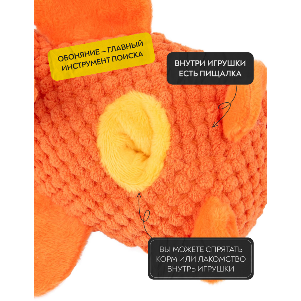 Отверстие под лакомство в животе игрушки как элемент головоломки.
