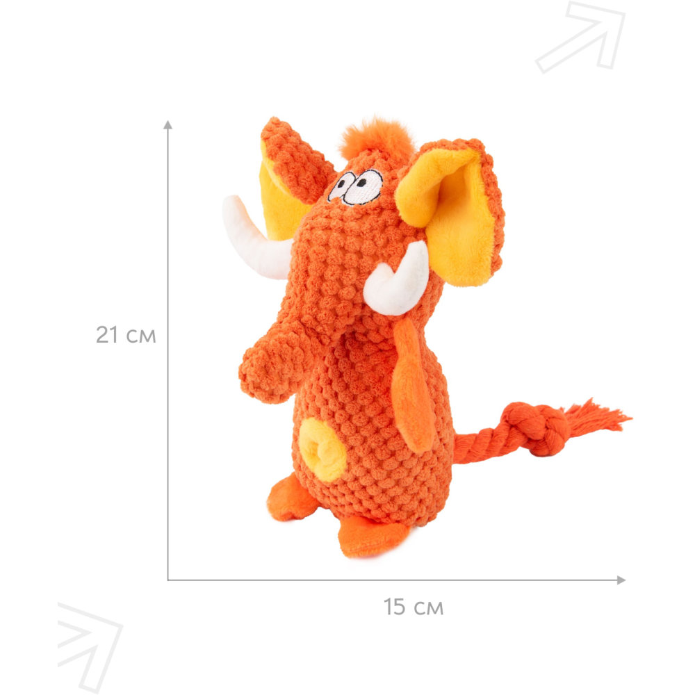 Игрушка Mr.Kranch для собак Слон плюшевая с пищалкой, шуршащими элементами, канатиком и отверстием под лакомство.