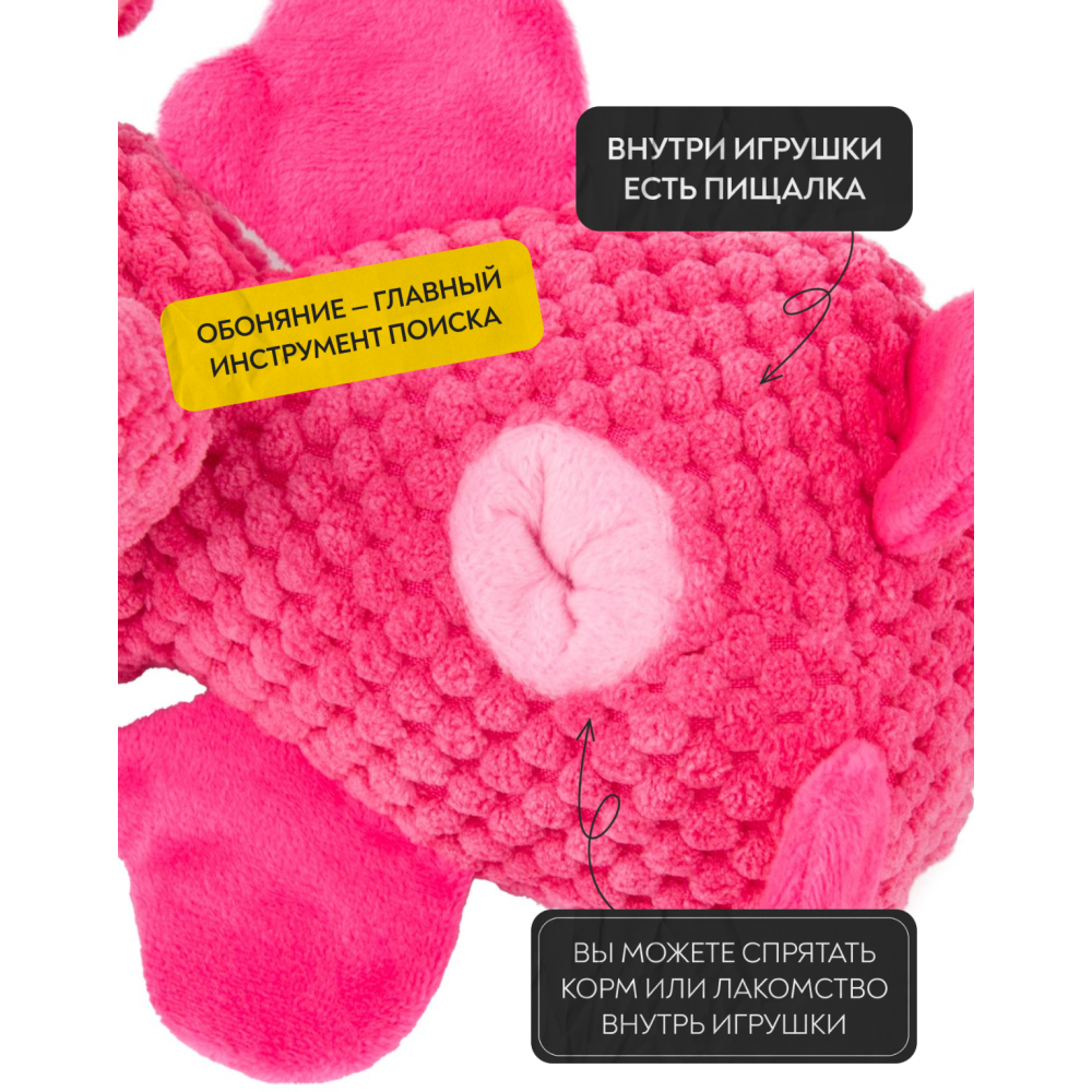 Отверстие под лакомство в животе игрушки как элемент головоломки. Шуршащие и пищащие элементы для увлекательной игры.