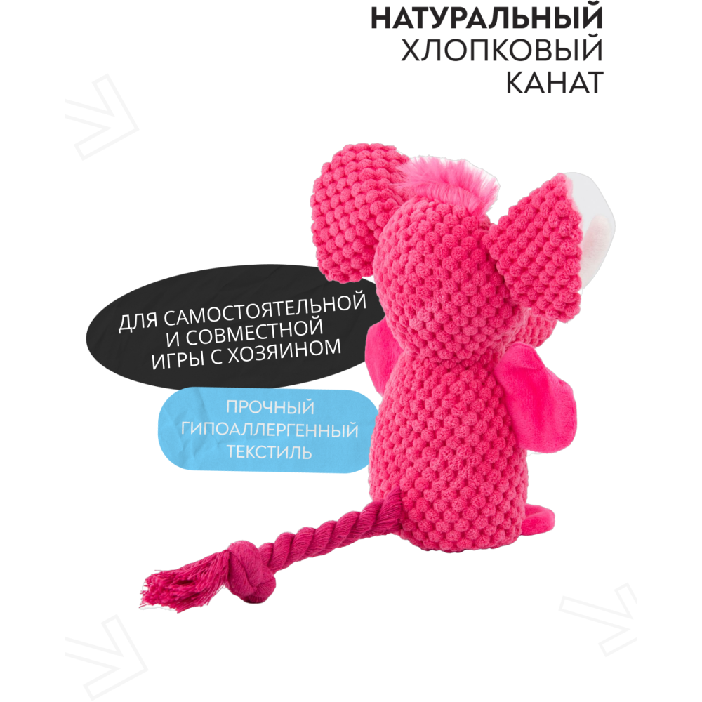 Игрушка Mr.Kranch для собак Слон плюшевая с пищалкой, шуршащими элементами, канатиком и отверстием под лакомство.