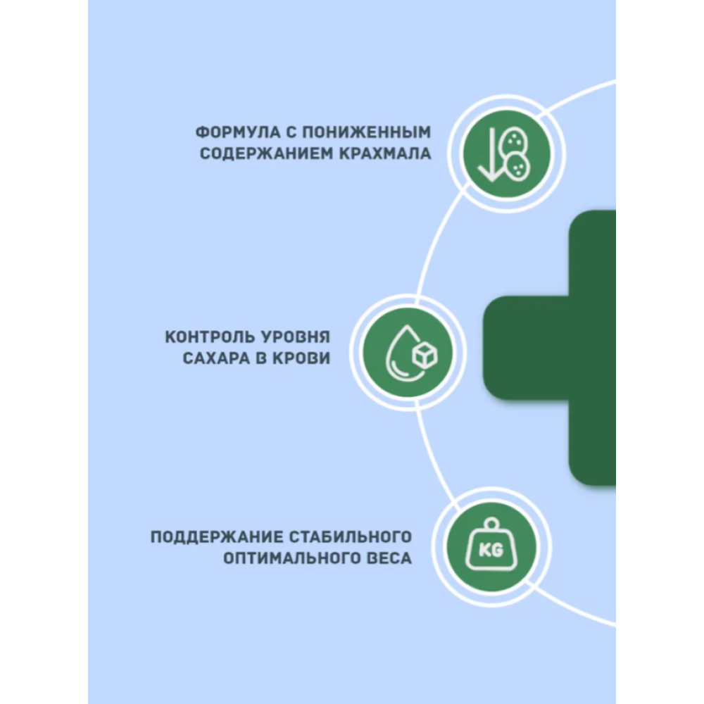 Благодаря пониженному содержанию крахмала и тщательно подобранным источникам белка и клетчатки, корм помогает регулировать уровень сахара в крови и поддерживать стабильный вес.