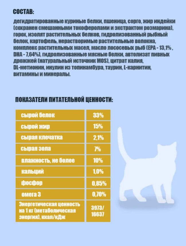 Рекомендован только для взрослых кошек.
