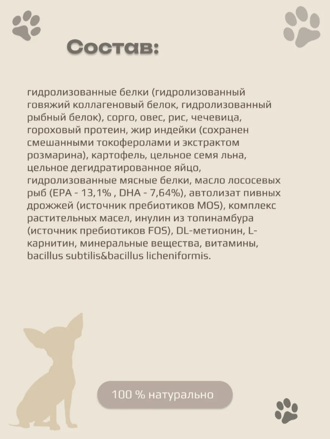 Формула с дегидратированным белком индейки, овсом, сорго и картофелем снижает нагрузку на пищеварительный тракт и способствует усвоению.
