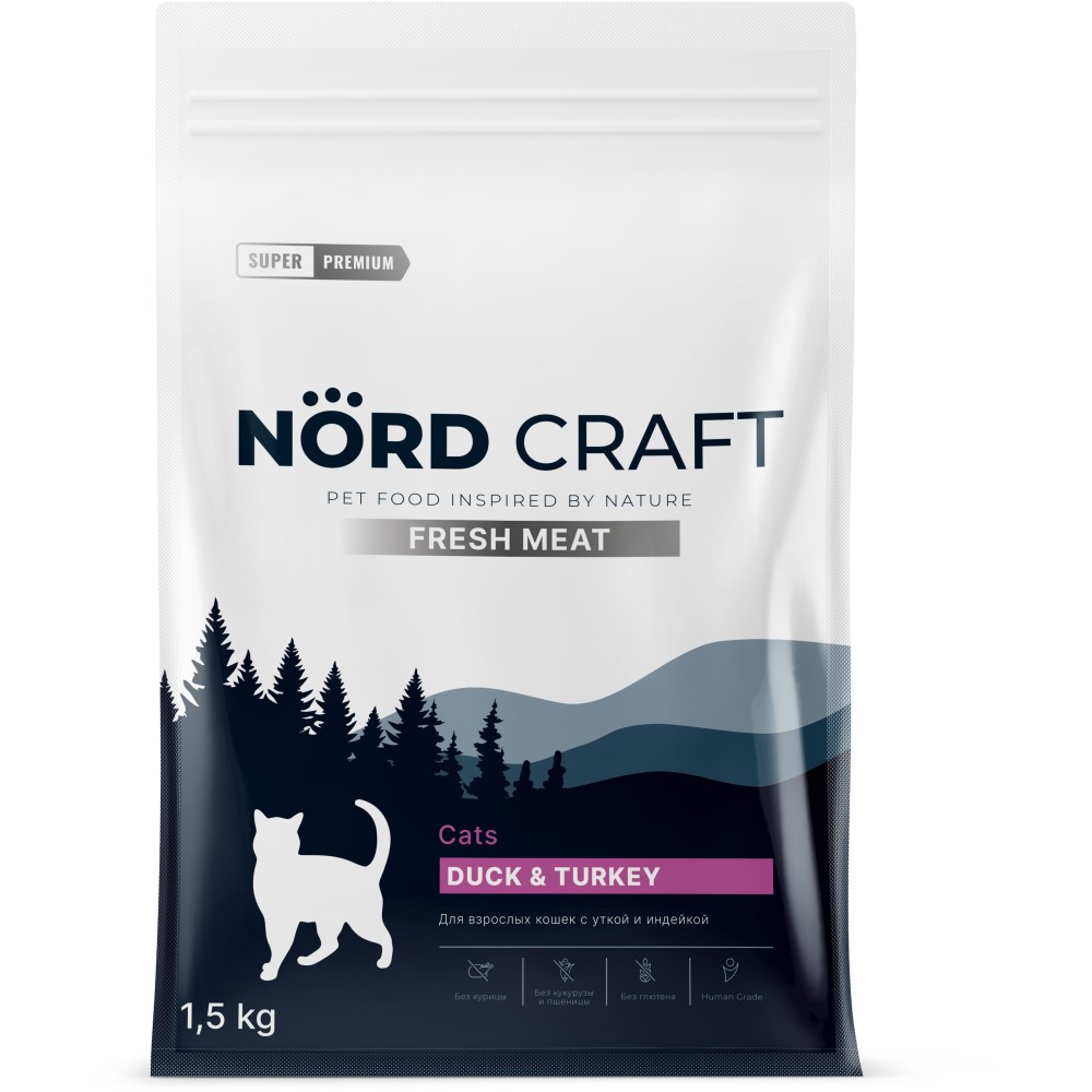 Основной ингредиент – гипоаллергенное мясо высшего качества (утка, индейка)