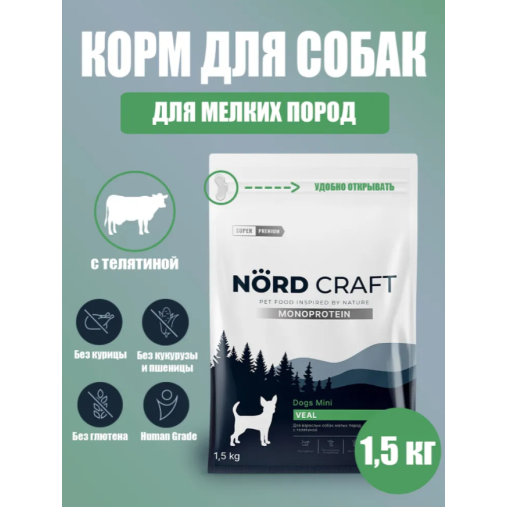 Сухой корм для взрослых собак мелких пород с телятиной Монопротеиновый рацион: гипоаллергенное мясо телятины - единственный источник белка