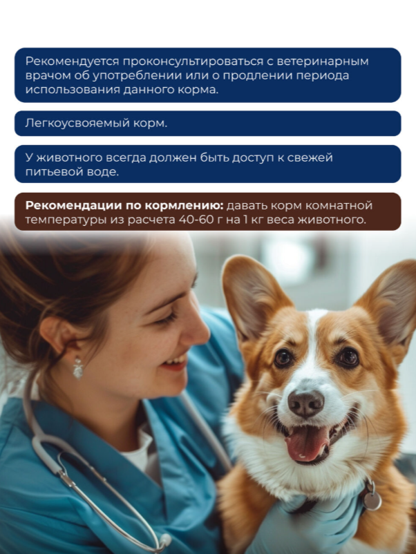 Рекомендуется проконсультироваться с ветеринарным врачом об употреблении или о продлении периода использования данного корма.