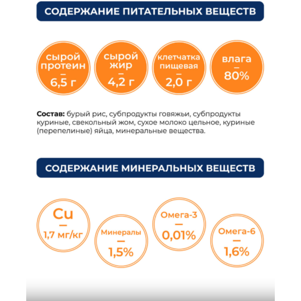 Легкоусвояемый корм снижает нагрузку на ЖКТ и печень, помогает восстановить обмен веществ.
